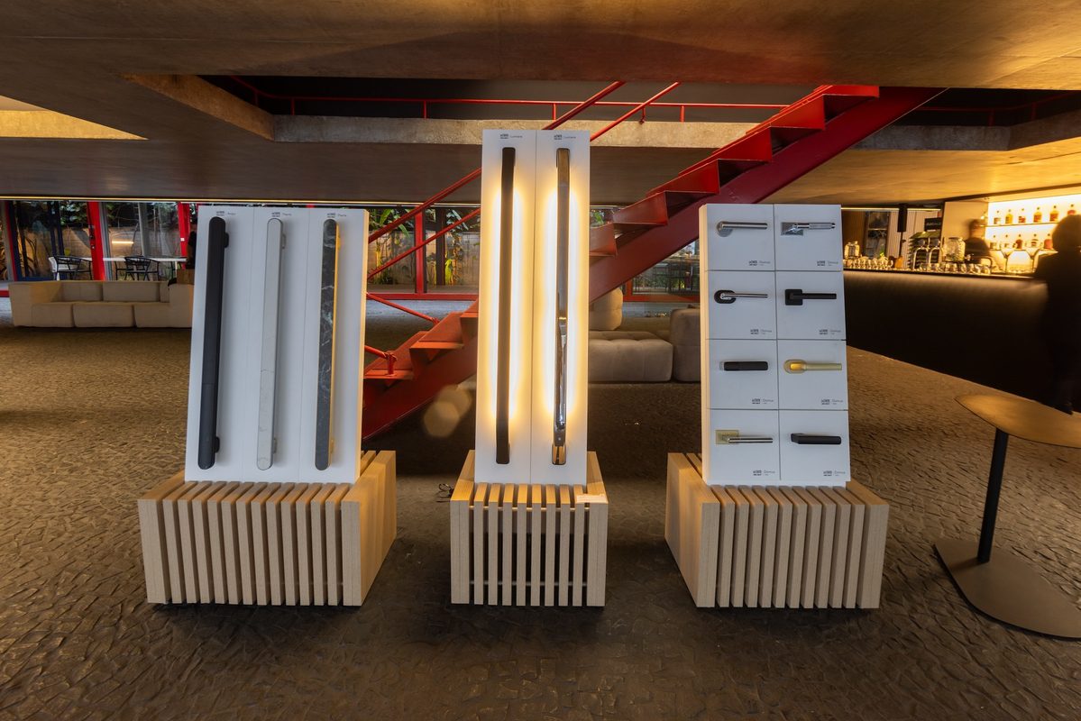 A La Fonte convidou o designer Rapha Preto para desenvolver os troféus do Prêmio. “Os troféus foram criados utilizando peças icônicas como puxadores, fechaduras e miolos de chave, todos produzidos em 100% latão reciclado. O design orgânico e circular simboliza a continuidade e a conexão entre tradição e futuro, enquanto as bases de pedra reforçam a solidez e a durabilidade que caracterizam a La Fonte. Esses elementos traduzem os valores da marca em uma peça única e sofisticada”, disse.